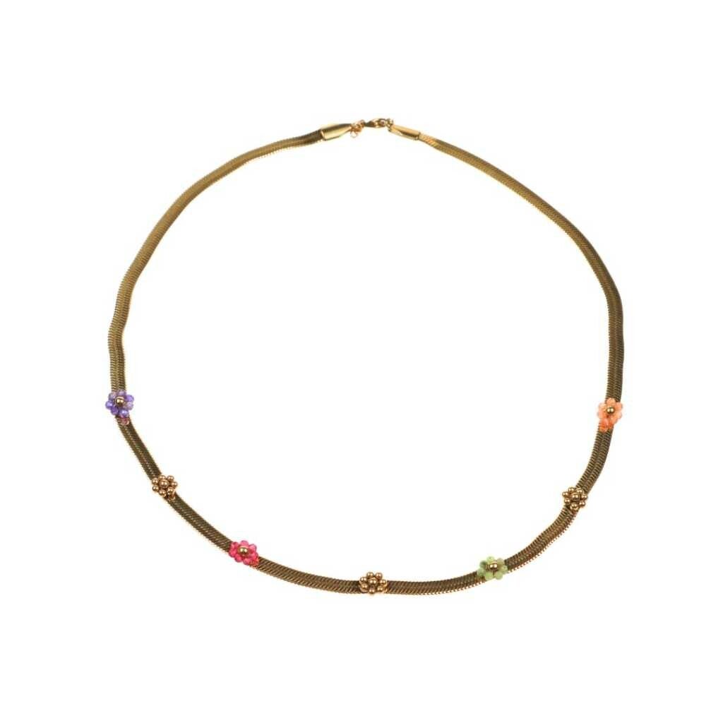 Deze mooie platte ketting met leuke kleuren bloemetjes. Heel leuk te combineren met het bijpassende armbandje!