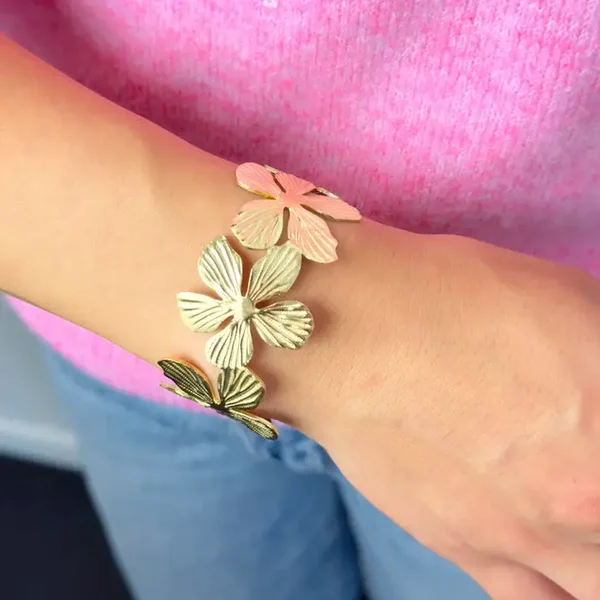 Bangle armband flowers GOLD and SILVER